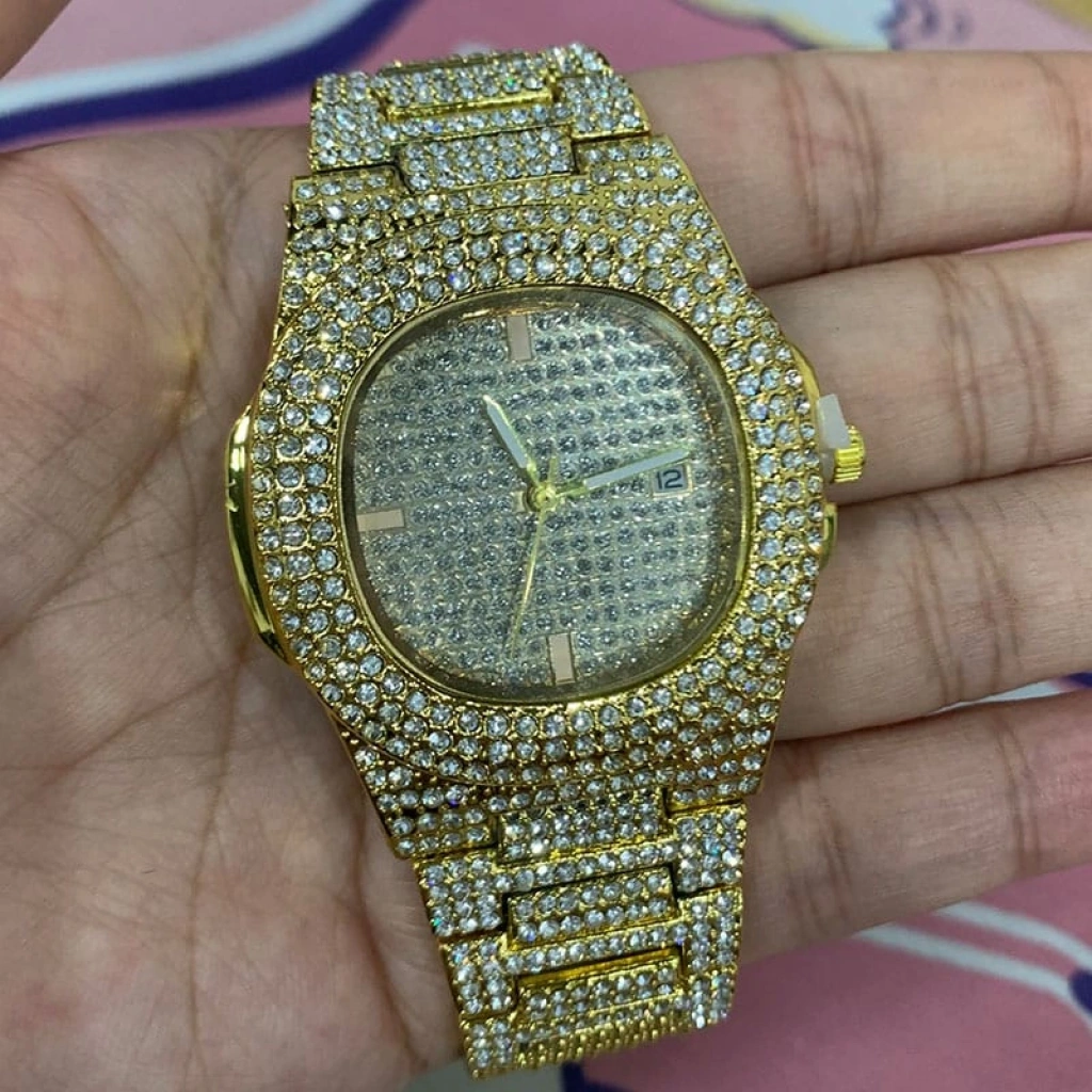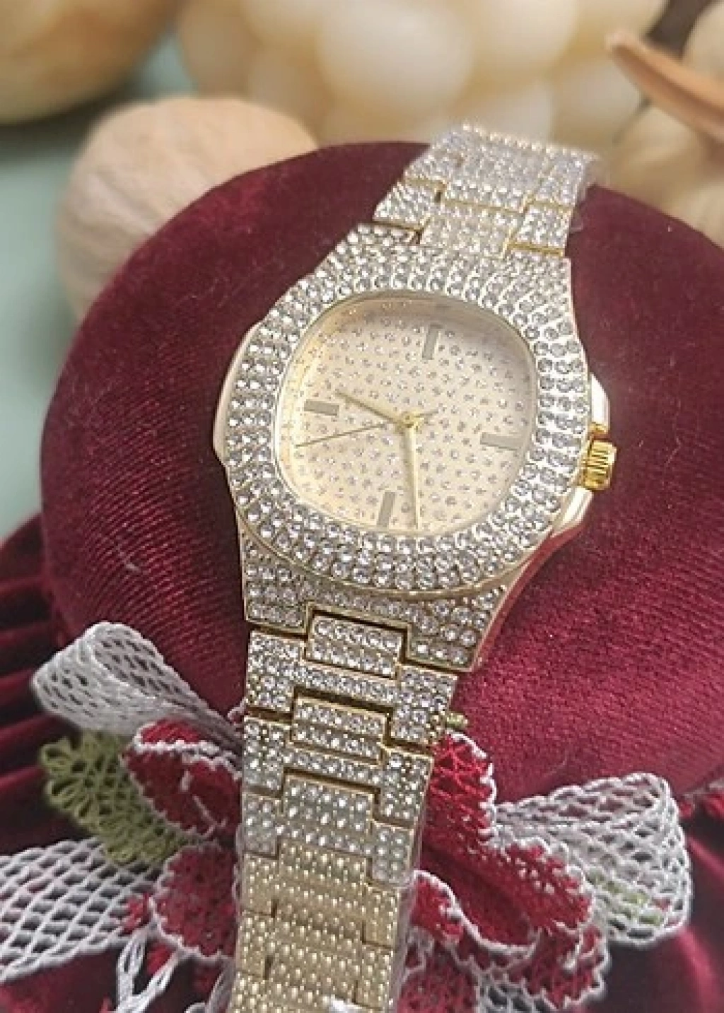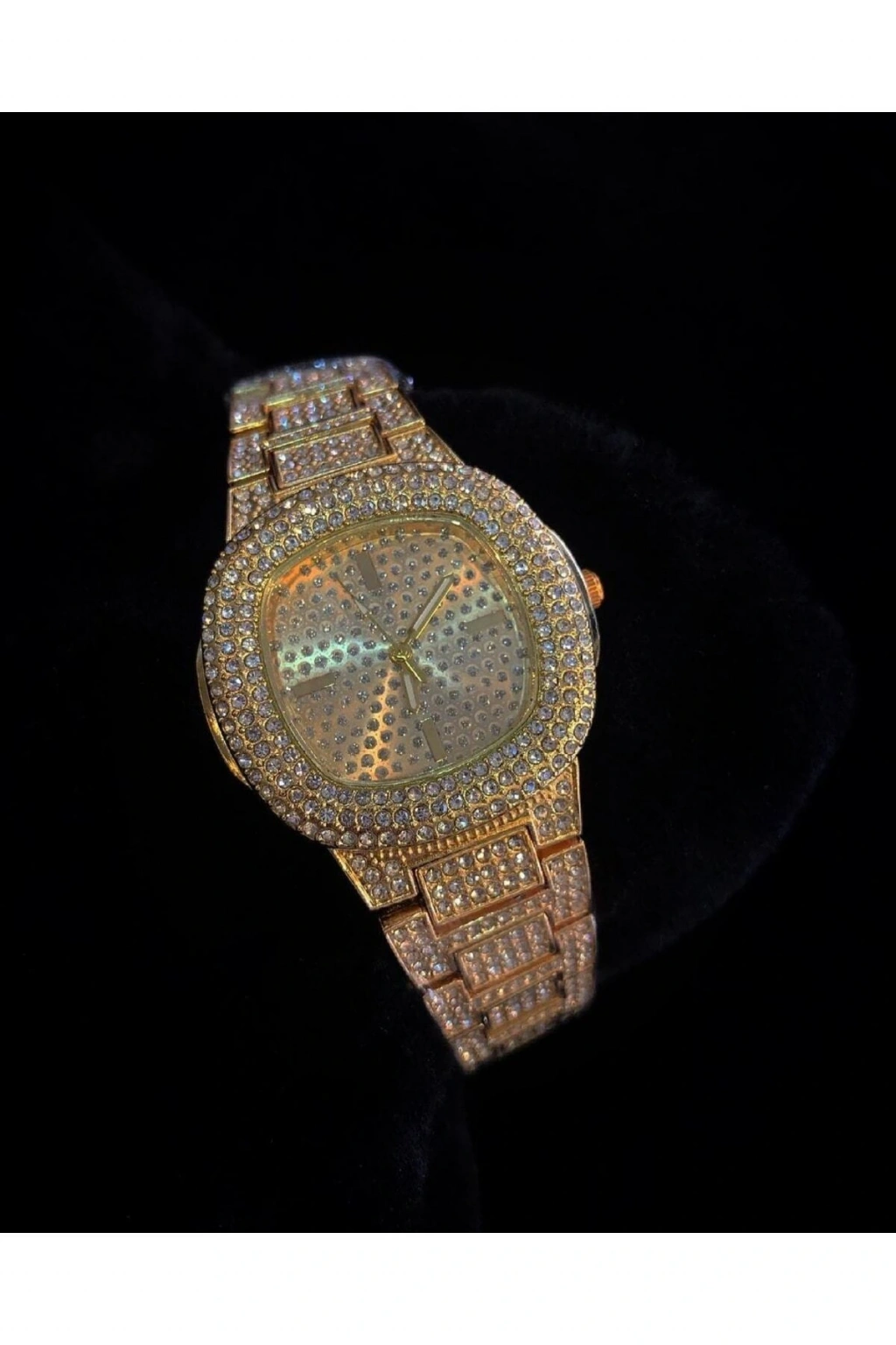 • Altın Renk Taş Kaplama Oval Kasa Tasarım Kadın Kol Saati