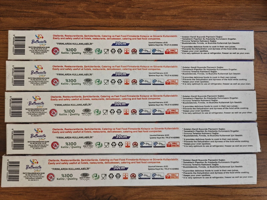 Bellavista Alüminyum Folyo 30 cm x 100 m Esnek ve Dayanıklı Mutfak Kullanımı için 5 li paket