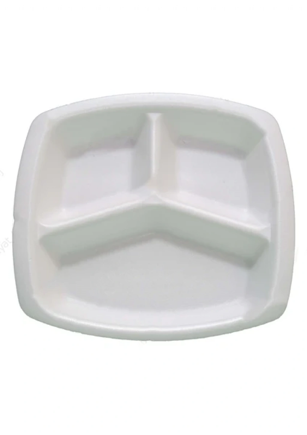 Beyaz 3 Gözlü Tabldot Köpük Tabak 100 Adet