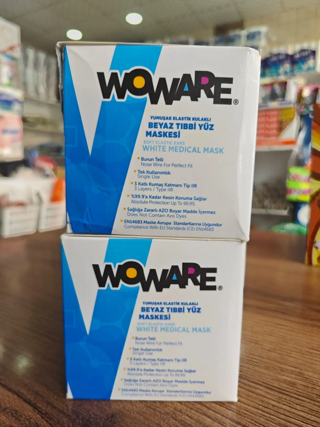 Ece Woware Lastikli Telli Cerrahi Yüz Maskesi 50 li Beyaz 2 kutu