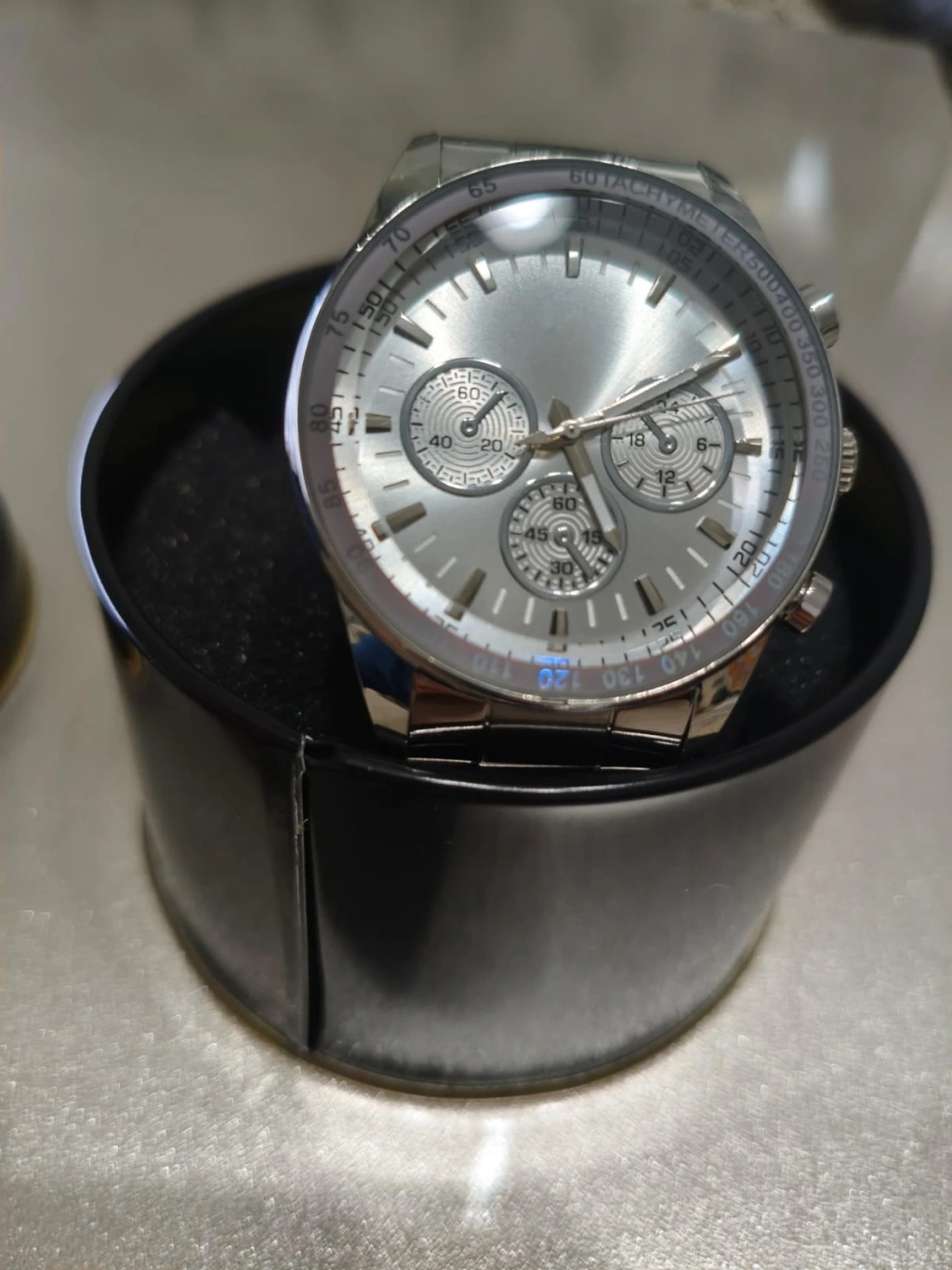 • Erkek Saat Çelik Kordon Kronograf Tasarım Beyaz kadran Quartz Kol Saati