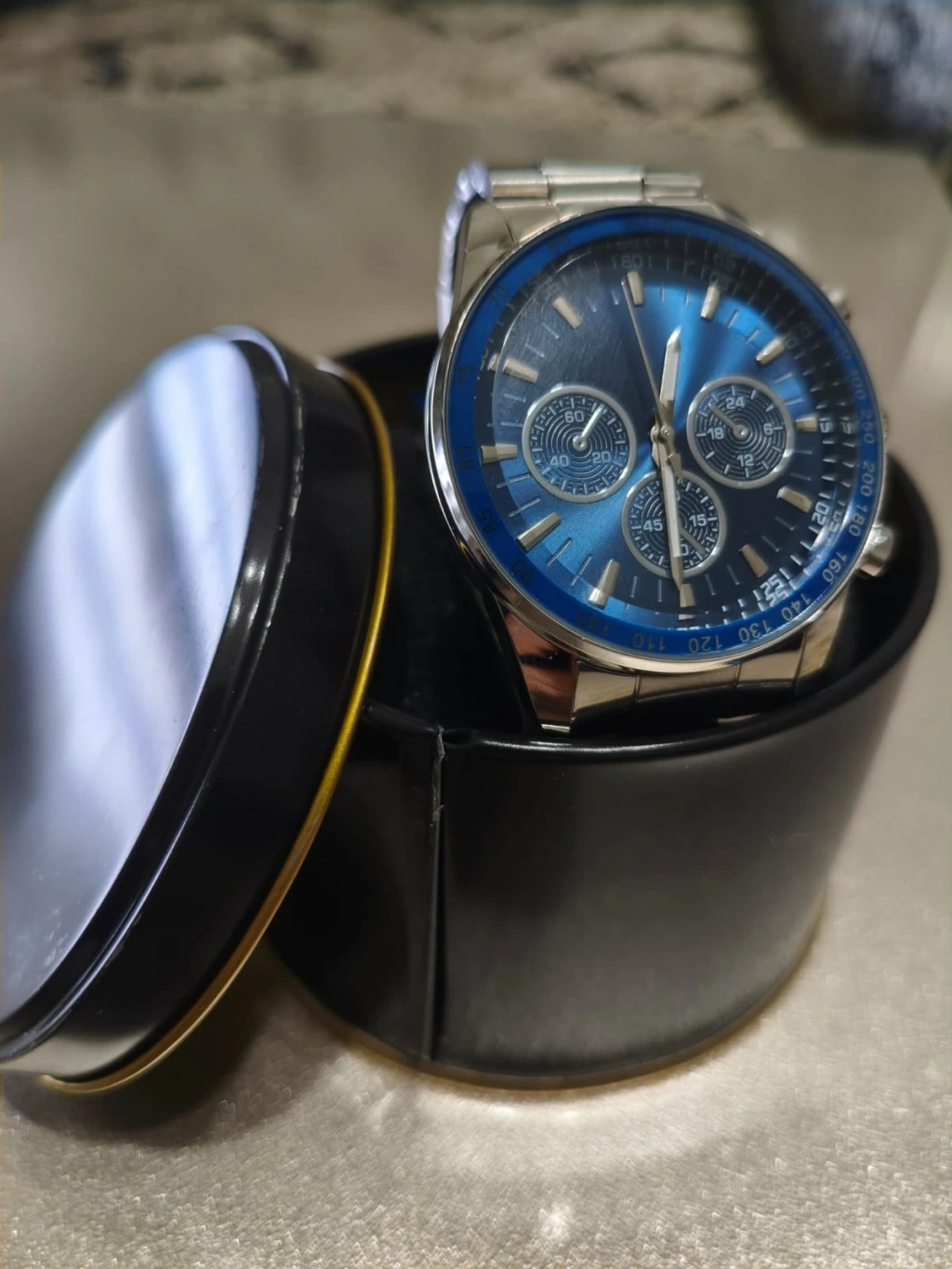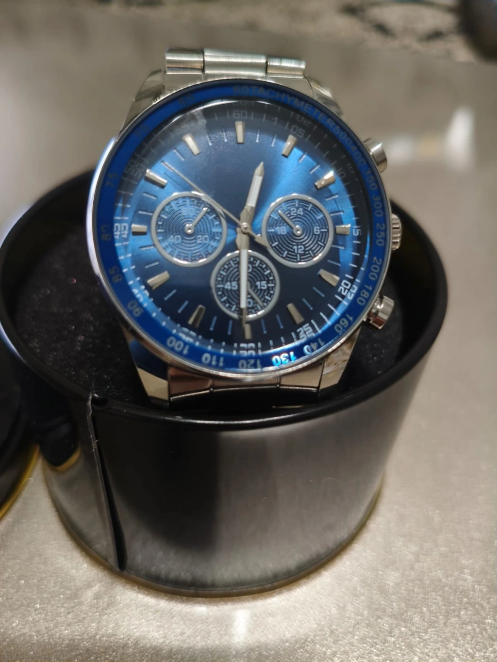 Erkek Saat Çelik Kordon Kronograf Tasarım Lacivert kadran Quartz Kol Saati