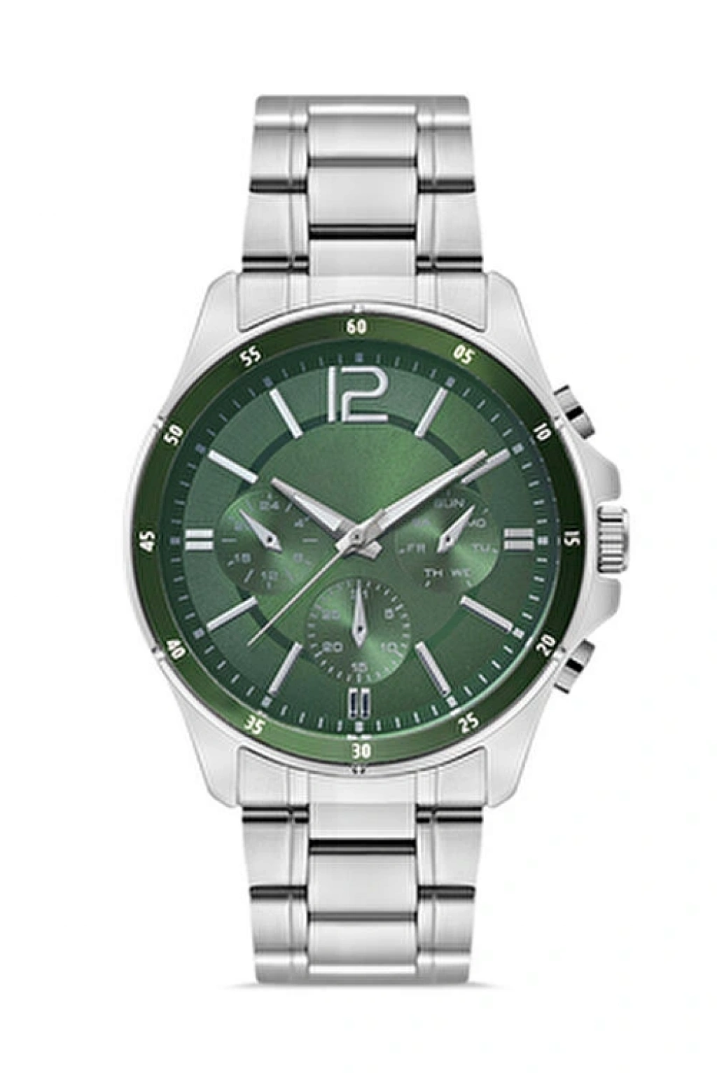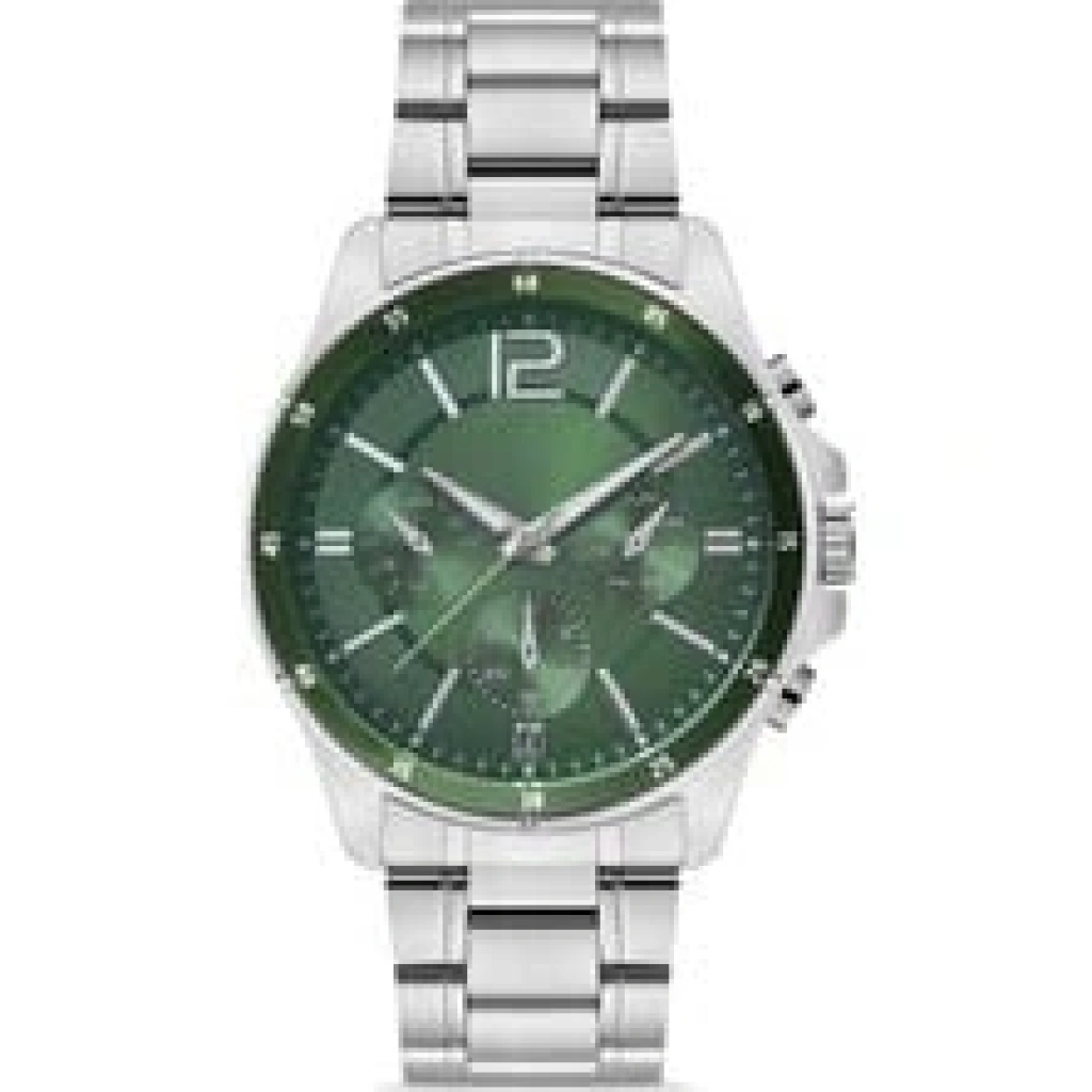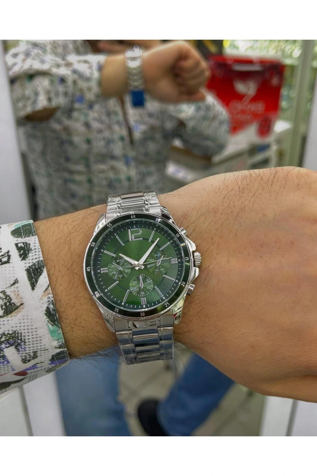 • Gümüş Çelik Kordon Erkek Kol Saati Takvimli Yeşil Kadran Özel Kutusunda