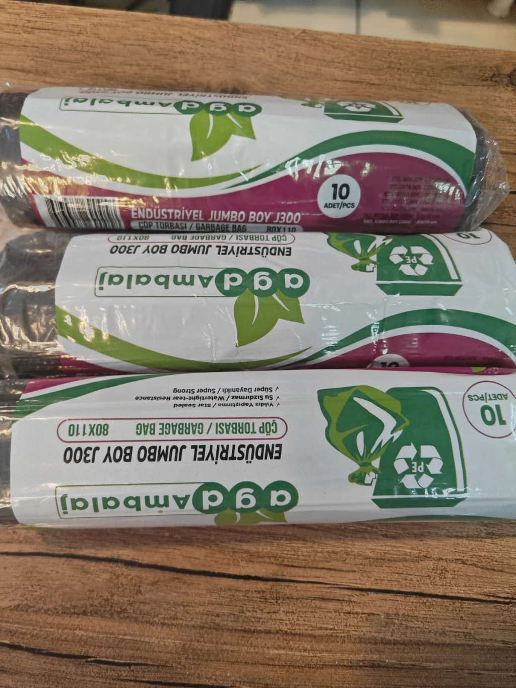 J300 JUMBO BOY ÇÖP POŞETİ 80X110 90 LT SİYAH RENK 3 LÜ PAKET