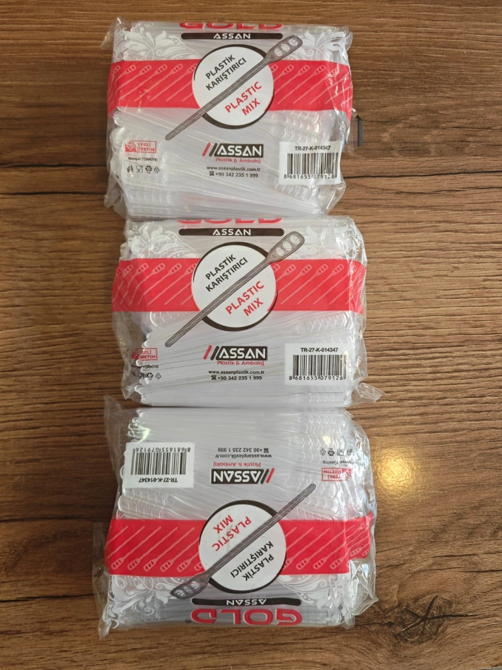 Lüks Şeffaf Plastik karıştırıcı 3 er paket 1500'lü 3,2 gr