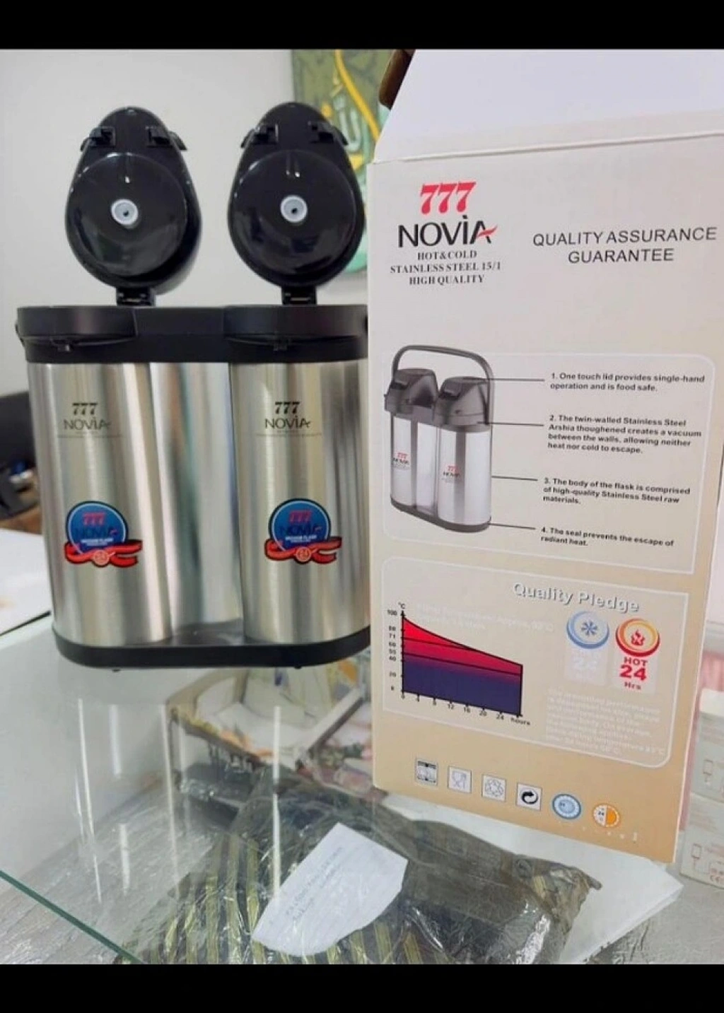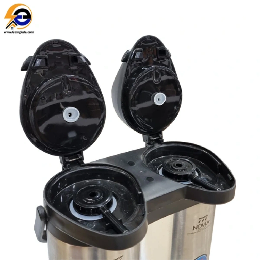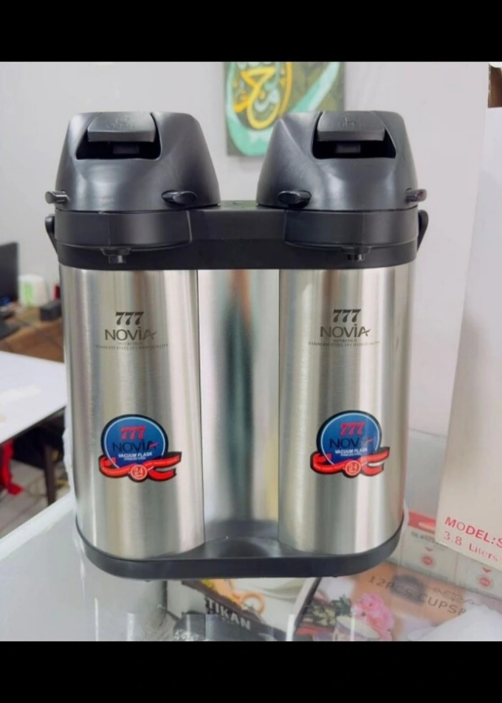 Çiftli termos 3.8 litre bir tarafına çay bir tarafına su koyabilirsiniz. Çelik , geniş aileler için gayet ideal bir termos 40 bardak çay çıkar. Pompalı,12.24 saat arası sıcaklığı muhafaza eder