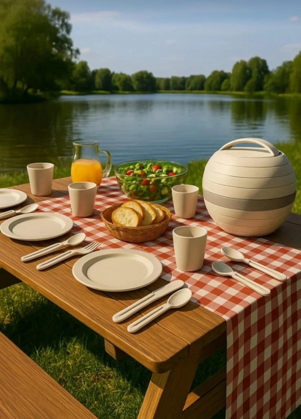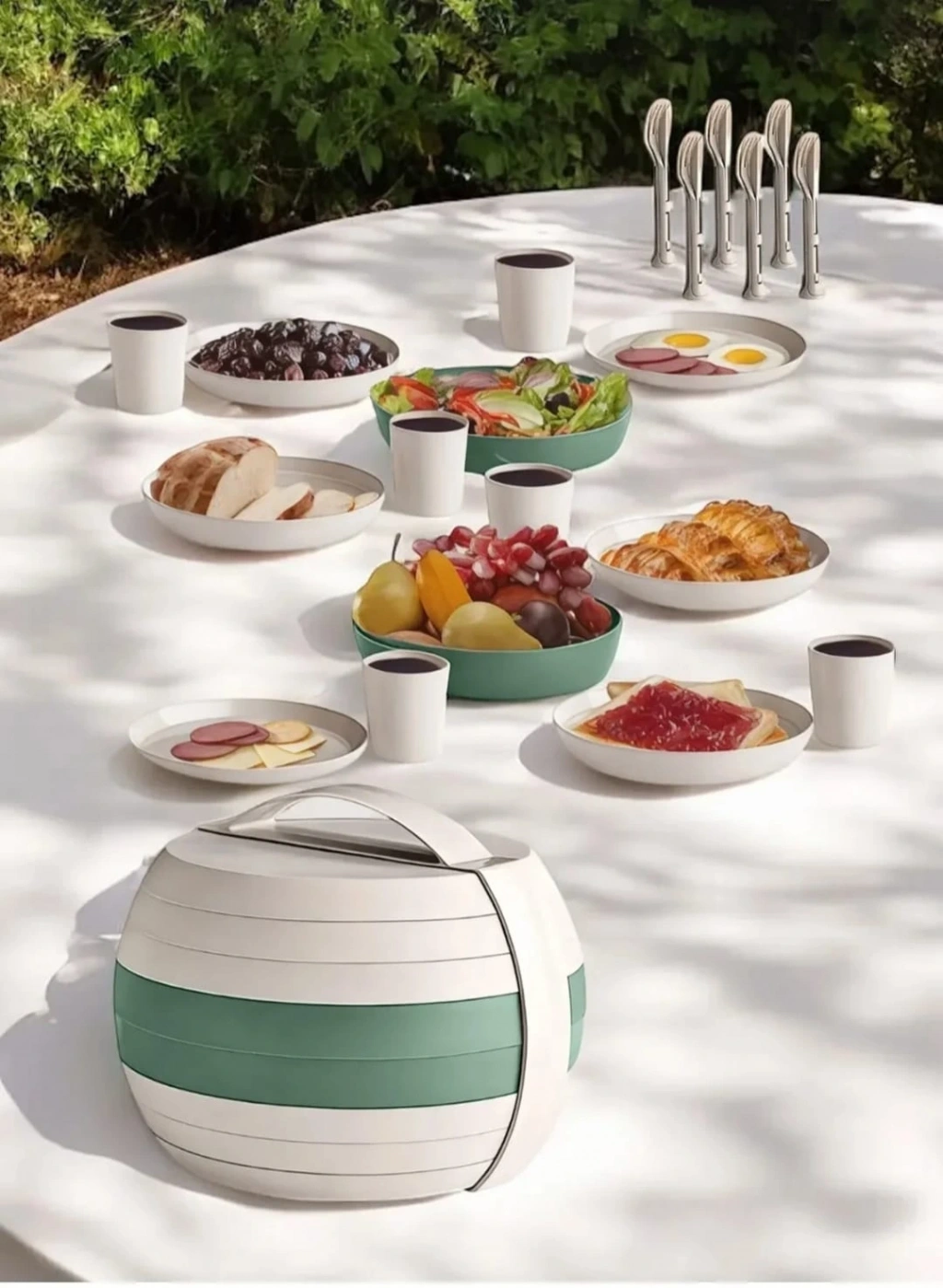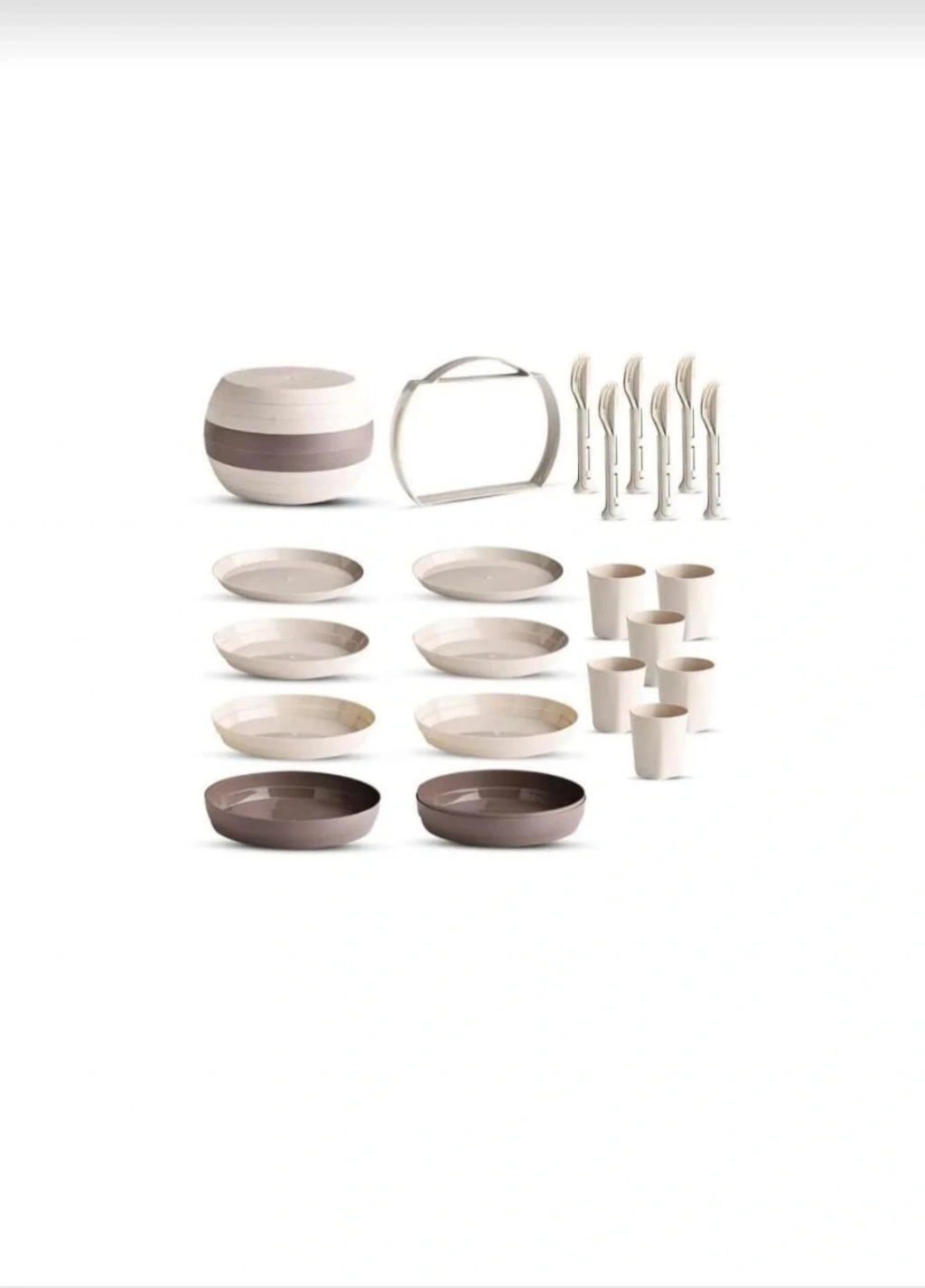 Taşınabilir 32 Parça Piknik Kamp Mangal Tabak Çatal Kaşık Bıçak Yemek Takımı 6 Kişilik Set