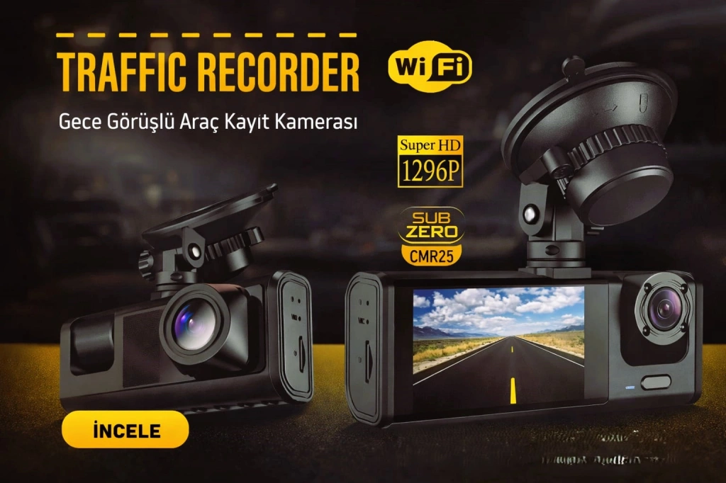 - Çift Kameralı Sistem: Ön ve arka kamera desteği ile aracın hem önünü hem arkasını aynı anda kaydeder.